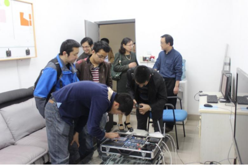 成都大学电子信息工程学院的相关领导热情接待了我系考察组一行。座谈会上电子信息工程学院的主任、副书记、副主任分别就电子信息工程学院的基本情况、学科建设、专业建设、实验室建设、人才引进、科研、人才培养、校内实训、大学生竞赛、电子信息工程专业卓越工程师计划开展情况等方面做了详细的介绍。并带领大家实地察看了电子信息工程学院的相关实验室。