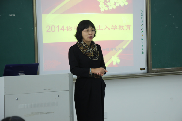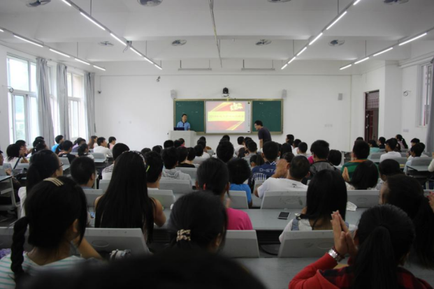 会议接下来由我系主任雷晓蔚教授讲话。她谈到我系学生的就业前景,这也是新生最关注的。我系各个专业在现今的社会发展中的前景是很好的,主要体现在学习这方面专业的人少,而且人才市场需求量大,社会正需要高素质应用技能型人才。对于不想从事专业工作的学生,雷教授用往届学生举例开导他们,毕业后可以考取教师、公务员等,历届毕业生一次性就业率高达97%,给了在场新生很大的信心。