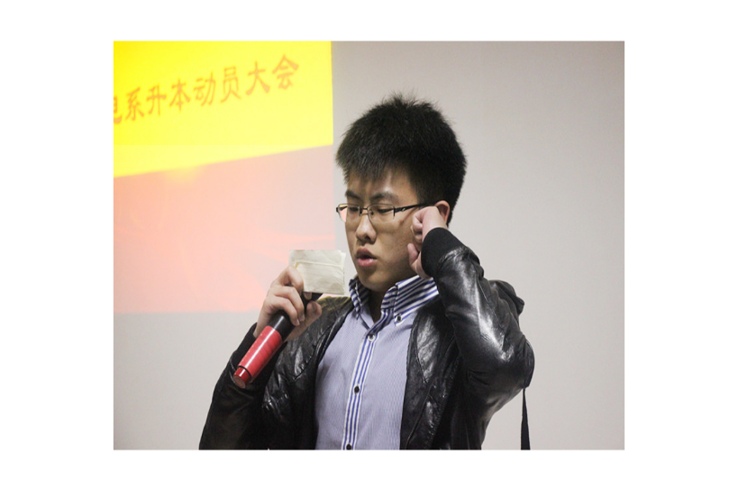 【本网讯】2014年5月18日晚,我系在实验楼B栋召开全系升本动员大会,系主任雷晓蔚教授、党总支副书记梁潘副教授参加了会议并作升本动员讲话。大会上,梁潘书记向学生们阐明我系升本对学生们的优势,以及升本的必要性,号召同学们用实际行动积极投入到学校升本工作中去。雷晓蔚教授向学生们阐述,我系作为一个即将升本的系部,老师不仅在加班加点努力,学生们也应该积极向上,做好自己的义务。