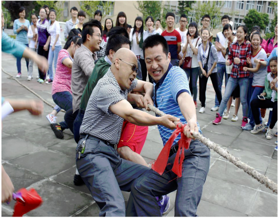 【本网讯】2014年6月11日,我系与生化系合办的趣味运动会在枫叶广场如火如荼地开展。尽管夏雨淅沥沥,但丝毫没有影响同学们的热情,两系系部书记、老师也准时到场,为同学们助威。