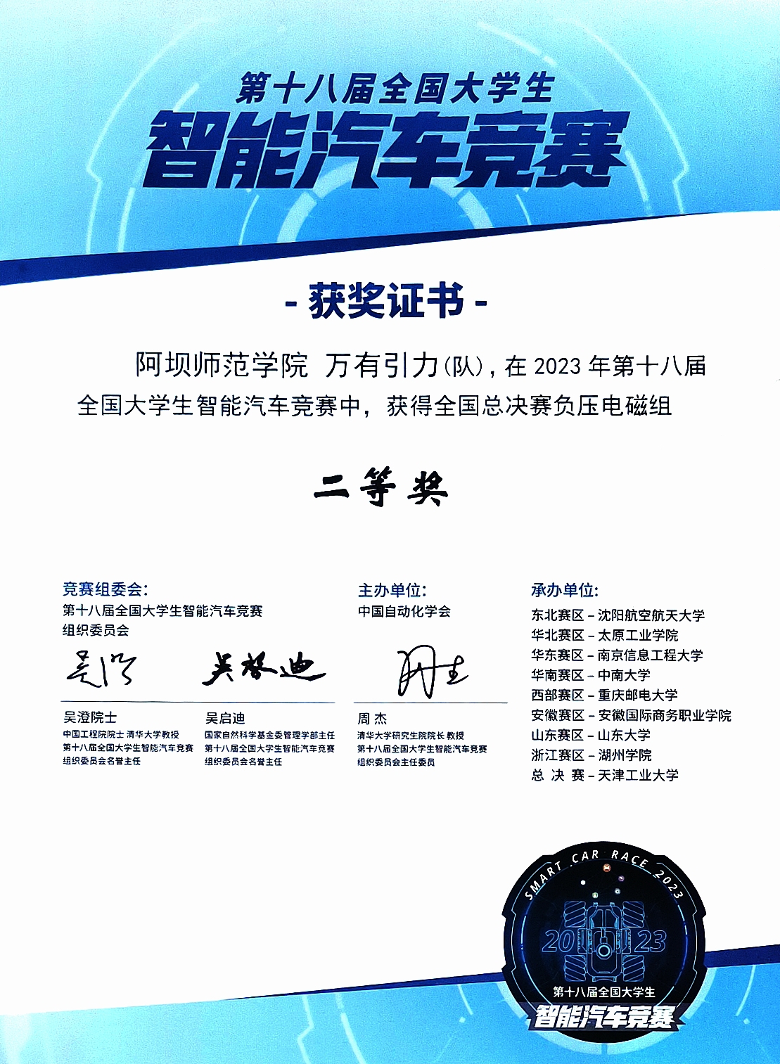 物电学院学子在此次大赛中再创佳绩,万有引力队、逆风翻盘队、银河护卫队分别获得全国总决赛二等奖。