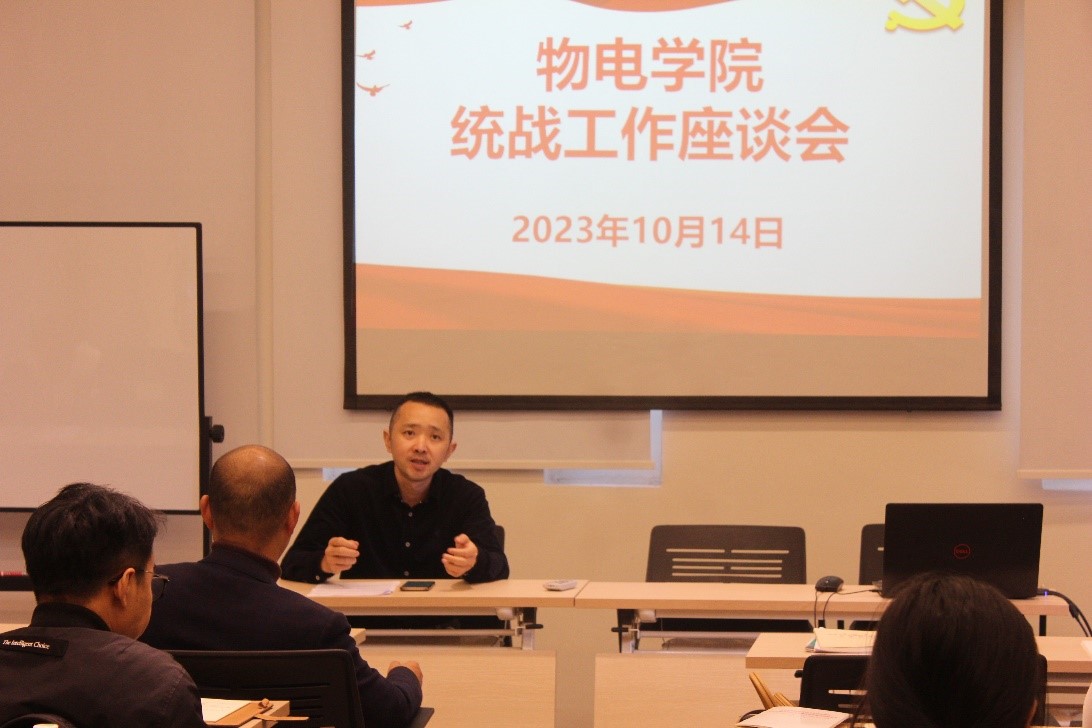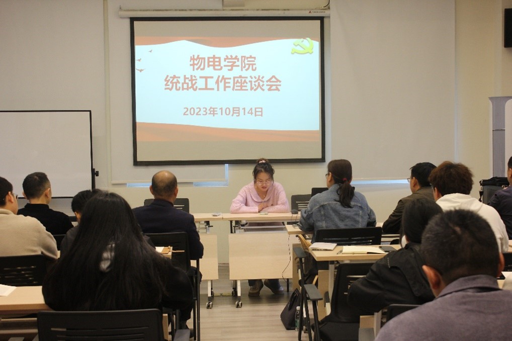 【本网讯】2023年10月14日下午,物理与电子电气工程学院召开统战工作座谈会。会议深入学习贯彻习近平总书记关于做好新时代党的统一战线工作的重要思想和习近平总书记来川视察重要指示精神,部署当前和今后一个时期学院统战工作。座谈会由学院党委副书记卢永雪主持。学院党委副书记、副院长莫建麟,无党派人士杨阔教授、晋宏营博士以及部分教师、学生代表参加。