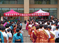 比赛开始前主持人依次介绍出席本次比赛的评委,详细介绍比赛规则。随后,由辅导员赵雪莲致辞,民族文化丰富多彩,赵雪莲老师表达了对此次比赛的殷切期待。比赛现场热闹非凡,各班级按照抽签的顺序依次上场比赛。比赛过程中,同学们各个神采奕奕,充满青春活力,随着音乐的节奏翩翩起舞,动作流畅而优美,充分展现了锅庄舞蹈的魅力。同学们身着民族服装,不仅舞出了锅庄的韵味,也展现了活力与魅力。经过激烈的角逐,最终评选出获奖班级:电子信息工程本科一班荣获一等奖、电子信息工程本职一班荣获二等奖、物理二班荣获三等奖。