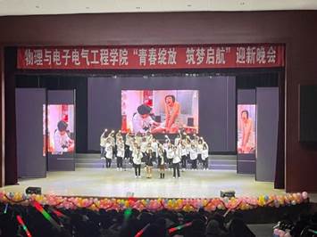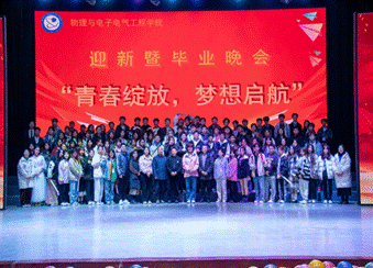 【本网讯】为了迎接23级新生、欢送毕业生,促进师生之间交流、提高凝聚力、展示学院风采,物理与电子电气工程学院于2023年11月26日晚19:00在南苑剧场隆重举行了以“青春绽放,筑梦启航”为主题的迎新暨毕业晚会活动。参加本次晚会的有学院党委副书记卢永雪、学院副院长王仕旭、学生办公室主任唐剑及物电学院全体在校师生。