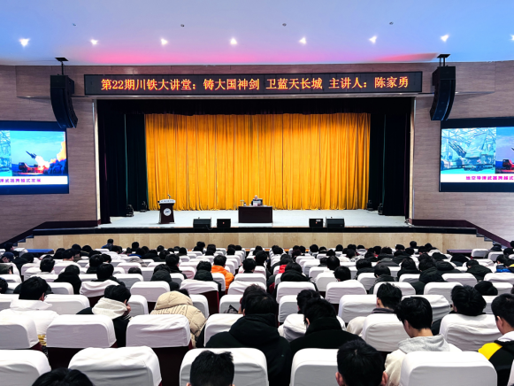 【本网讯】为深入学习贯彻习近平新时代中国特色社会主义思想和党的二十大精神,增强学生国防观念和国家安全意识,培塑爱党爱国爱军精神,结合教育厅2023年度高校军事课骨干教师巡回授课及教学展示活动安排,2023年12月26日下午,我院陈家勇教授在四川铁道职业学院作“铸大国神箭,卫蓝天长城”专题报告,学校2024年应征入伍报名学生和师生代表600余人参加。