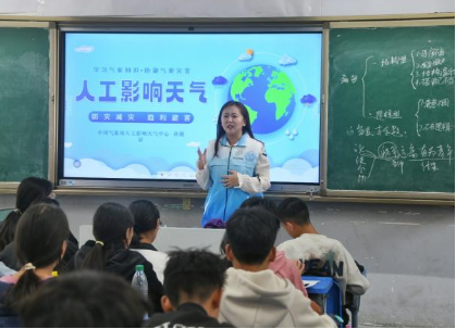 接着,中国气象局人工影响天气中心的专家孙晓岩为大家详细介绍了人工影响天气的基本原理、发展历程以及主要技术手段。孙老师的生动讲解让学生们对人工影响天气工作的科学认知,也在学生们心中埋下了希望和梦想的种子。