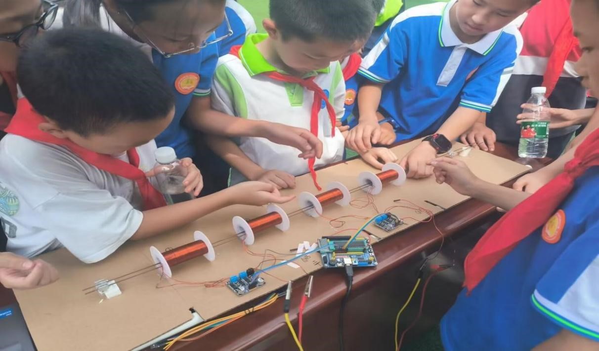 我校参展的科技创新项目为《一种融合北斗导航系统、声音定位系统的越野小车》和《一炮当先——电流反向多级加速电磁炮的高能效与结构优化设计》。在我校学生代表的悉心指导下,中小学生们对这两个项目的具体操作、构成原理以及设计思路有了初步了解。他们纷纷争相尝试,对这些项目爱不释手,有效培养了自身的创新精神和动手能力。下午14:30,我校王清平老师作为受邀颁奖嘉宾出席了此次科技创新大赛的颁奖活动,为我校与汶川县在科技创新教育方面的交流与合作搭建了坚实的桥梁。