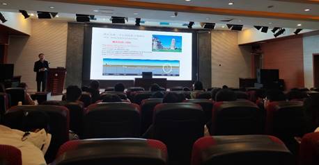 张淼副教授从中学“比萨斜塔实验”引入,以“测量重力加速度的实验”为主线展开讲座。他讲到,中学实验通常利用单摆或自由落体运动来测量重力加速度,这是理解宏观物体在重力场中运动规律的基础。接着引出微观粒子在类似情境下行为的复杂性,成功吸引了同学们的注意力。