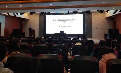 【本网讯】为带领我院学生领略理论物理之美,激发科研创新热情,2024年11月13日下午15:00,西南交通大学物理学院张淼博士莅临阿坝师范学院,在学术报告厅为学院师生带来题为《原子干涉仪的幺正演化算符方法》的学术讲座。2022级、23级物理学专业全体学生和物理学教研室全体教师积极参与此次讲座。
