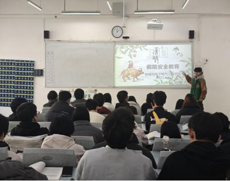 【本网讯】临近清明假期,为切实保障学生在假期期间的安全,2025年4月1日,物理与电子电气工程学院各班于树人楼开展了清明假期安全教育主题班会。