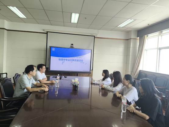 两位老师详细询问了4位同学在课程学习、专业发展、校园生活等各方面的情况,特别关心她们是否适应西北师大的校园生活和学习节奏。4位同学表示,自己很好的融入了西北师大物电学院的学习氛围,对西北师大物电学院前沿的实验室条件、教授们严谨开放的治学态度和学院良好的学习风气印象深刻。她们特别感谢学校为大家提供的交换生学习机会,感谢母校在生活和学习上的关心帮助。