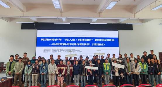 【本网讯】为推动航空科技知识普及,培养青少年科学素养与创新能力,2025年6月23日下午,在历经四天扎实的“无人机+科技创新”教育培训后,阿坝州青少年科创竞赛与科普作品展示活动在热烈氛围中顺利开展。来自壤塘县中学等多所学校的师生团队,携精心制作的科创作品齐聚一堂,共赴这场充满科技魅力的盛会。