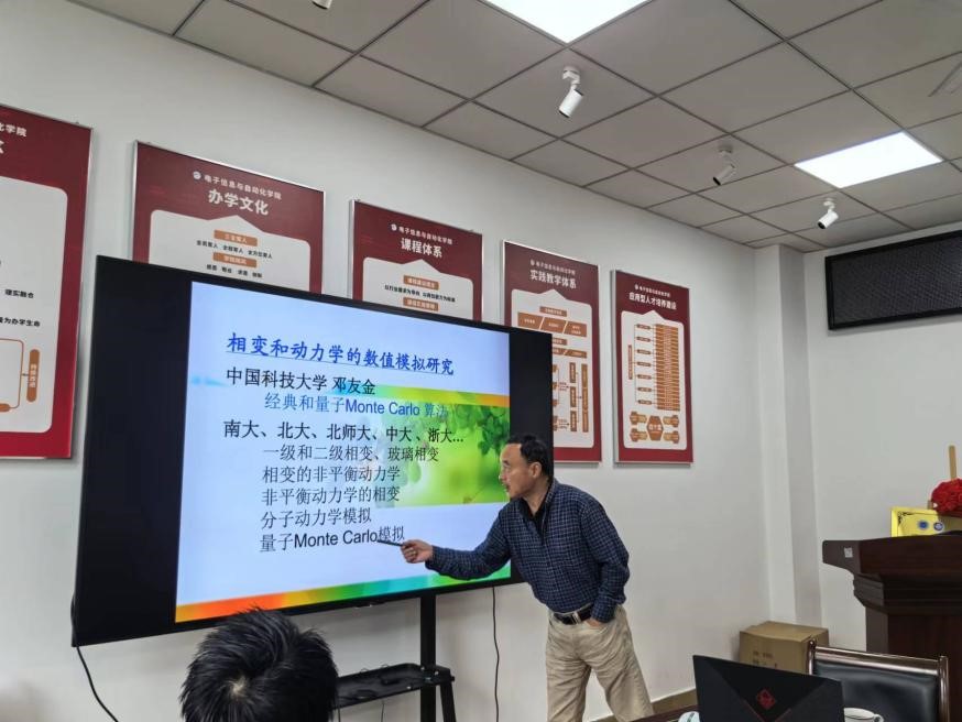 【本网讯】为进一步促进学术交流与合作并提升科研水平,阿坝师范学院物理与电子电气工程学院于2025年6月27日荣幸邀请到曾任浙江大学物理学院院长、云南大学物理学院院长、现任教育部长江学者的郑波教授来校访问。郑教授在学院会议室作了题为“统计物理学及其应用和交叉领域的研究潮流”的学术报告,物理学教研室全体教师及23级物理学专业部分学生悉数出席。