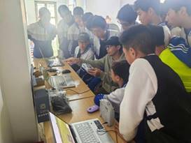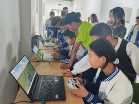 随后,培训团队组织学生在操场实际操作遥感灭火无人机,通过实践飞行,优化无人机设计,开展地质灾害巡查模拟演练,学生们亲自操控无人机对模拟隐患区域进行空中监测,实时传输的画面生动展现了无人机在地质灾害预警中的技术优势。这种沉浸式的体验让科技防灾的理念深入人心。