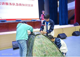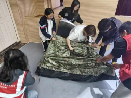 当日下午,团队系统讲授心肺复苏技术要领,组织学生实操演练;通过帐篷搭建技巧讲解与竞赛,强化知识应用能力。
