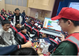 随后无人机专题展示开始。志愿者阐明其在现代救援中的核心价值,并借助模拟器让同学们亲身体验飞行操控,感受科技实践乐趣。
