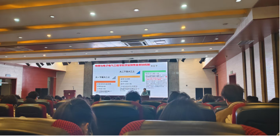 【本网讯】为进一步加强学风建设,营造积极向上的学习氛围,物理与电子电气工程学院于2025年3月25日在学术报告厅隆重召开物理学专业学风建设大会。学院党委书记卢永雪、院长莫建麟、副院长唐剑、相关教师代表及物理学专业全体学生参加了本次会议。