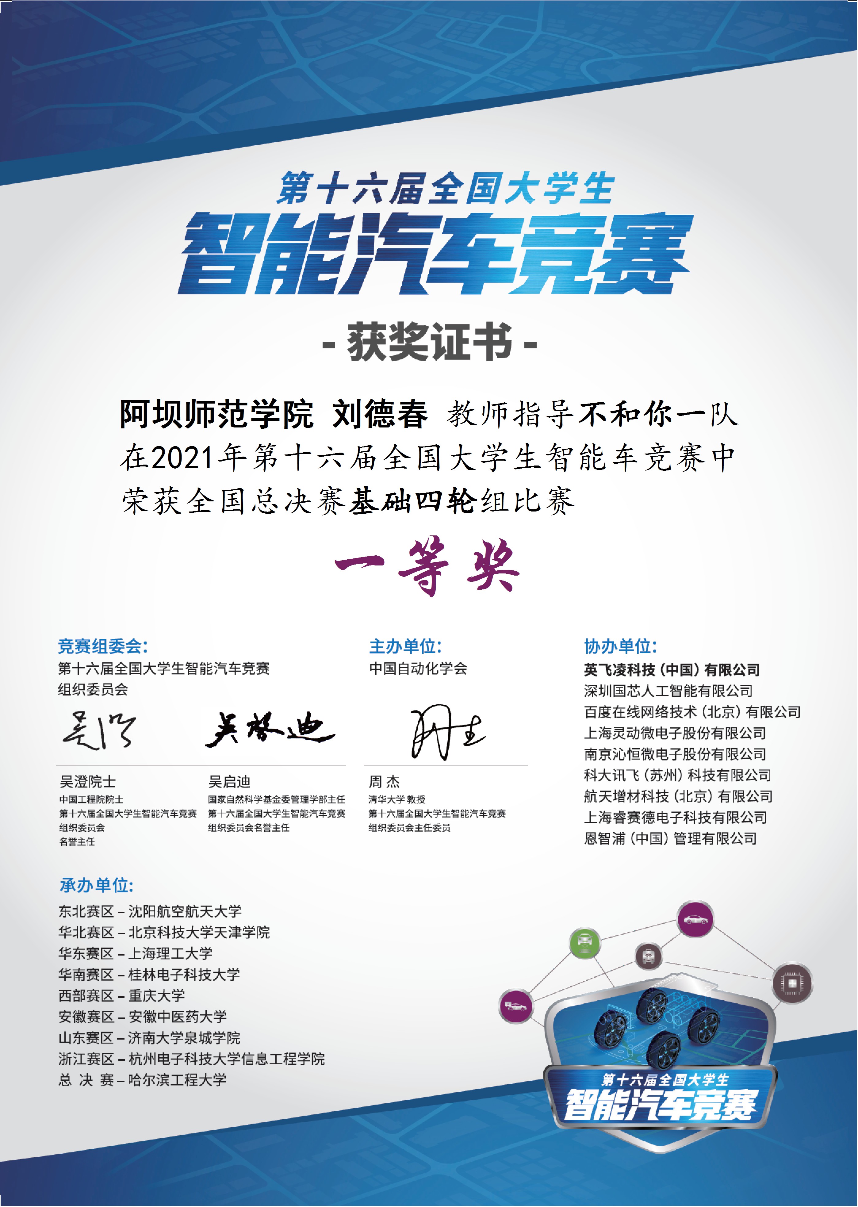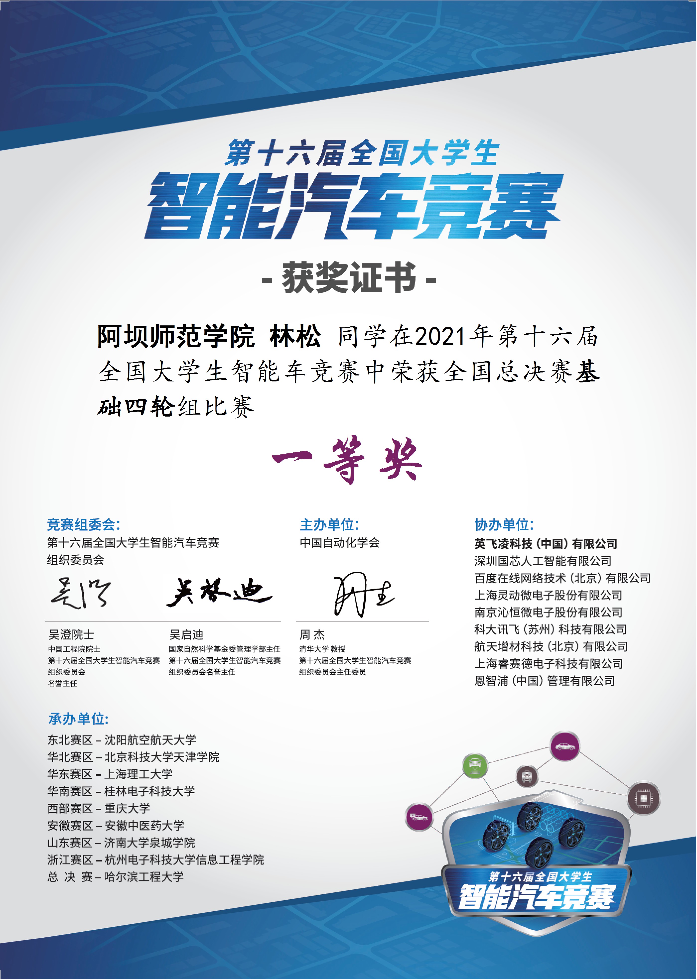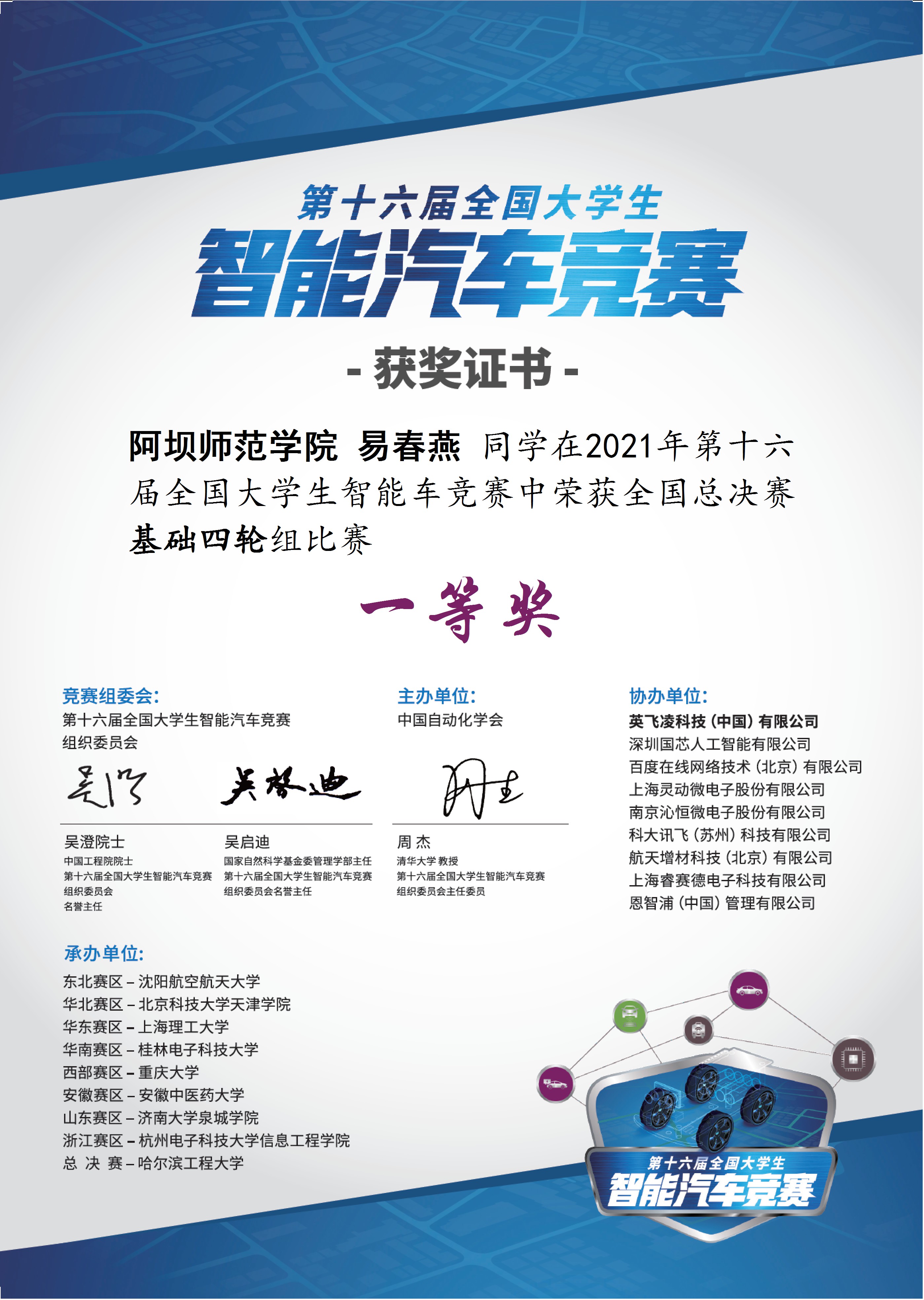 【本网讯】2021年8月20日-23日,“第十六届全国大学生智能汽车竞赛”全国总决赛线上竞赛已圆满结束。经过西部赛选拔,我校电子信息与自动化学院学生林松、易春燕、周智玲组成的基础四轮组“不和你一队”,在西部赛区44支队伍中以第6名的成绩晋级全国总决赛。在刘德春、邹富成老师的指导下,同学们根据国赛要求,自行设计赛道、开发硬件、调试参数、研究算法,最终以300分的成绩,荣获竞速组全国总决赛一等奖,取得我校智能车竞赛历史性最好成绩。