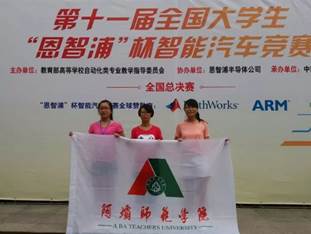 【本网讯】2016年8月19日,第十一届全国大学生“恩智浦”杯智能汽车竞赛全国总决赛在中南大学举行。本届大赛由教育部高等学校自动化类专业教学指导委员会主办,恩智浦半导体公司协办,湖南中南大学承办。我校晋级决赛的代表队“疾风” (光电组),由李莉莉、冉小雪、彭文纹组成,2016年智能车竞赛西部赛区光电组排名第四。经过与全国8大分赛区产生的253支入围队伍激烈的速度比拼,阿师智能汽车代表队最终夺得全国二等奖。
